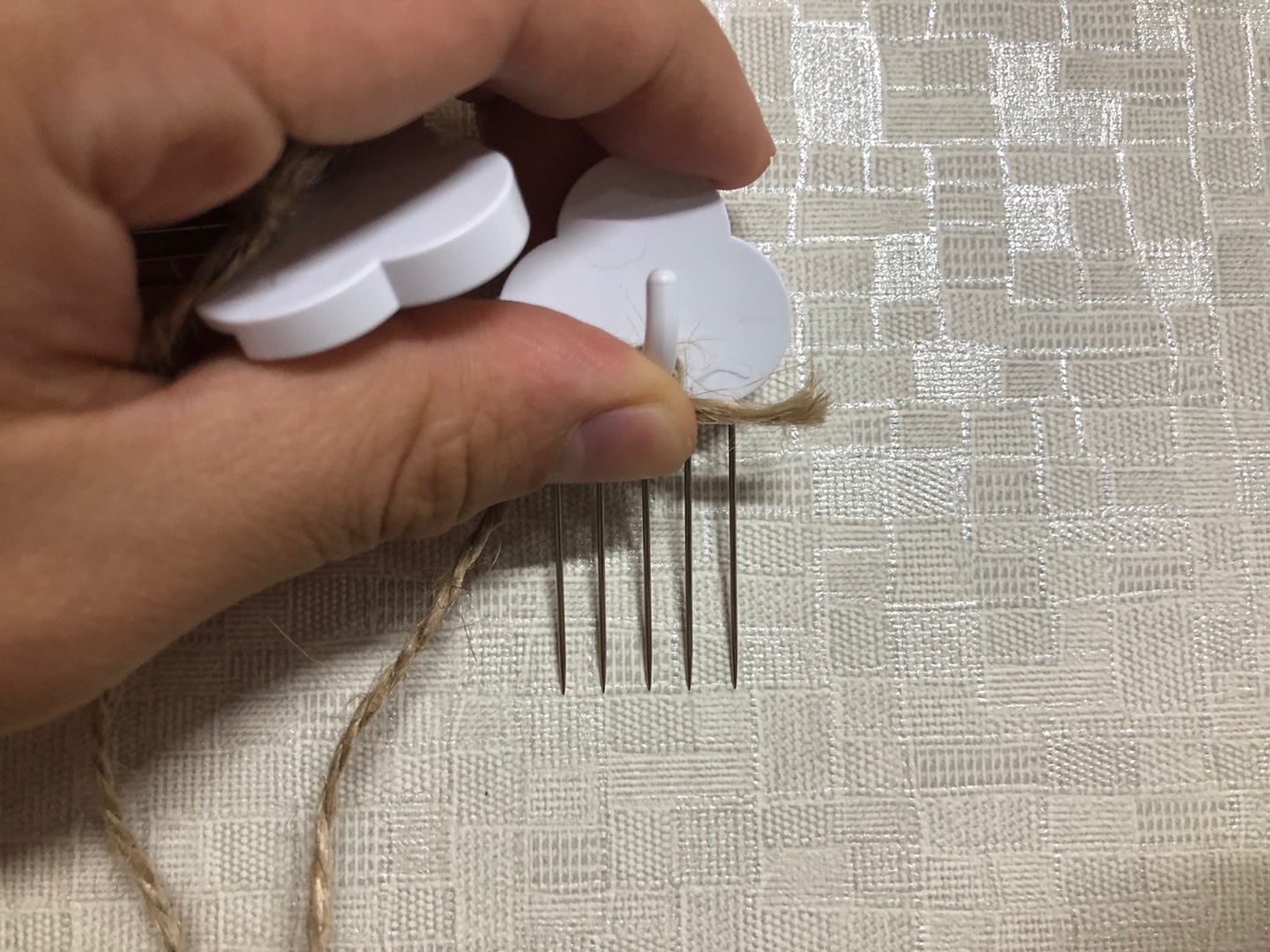 줄을 후크핀에 묶어야 하니까